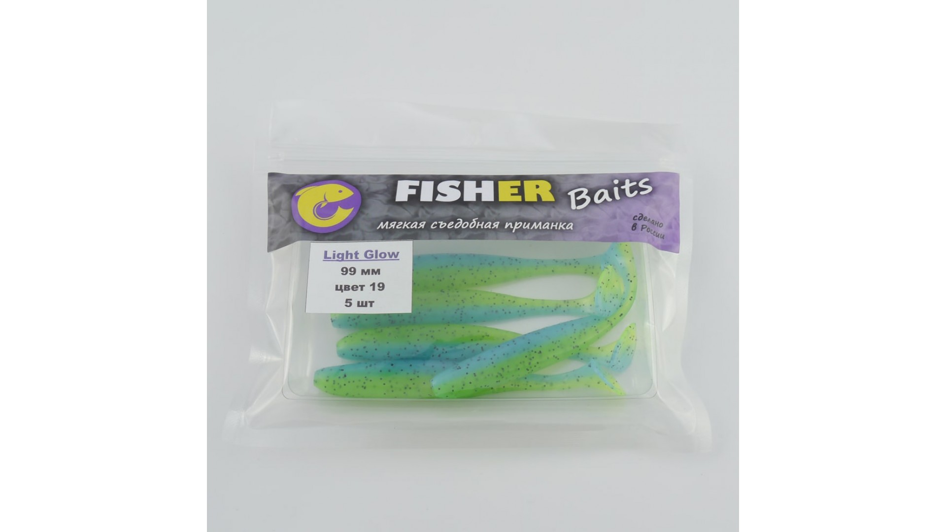 Виброхвост FISHER BAITS Light Glow 99мм цвет 19 (уп. 5шт)
