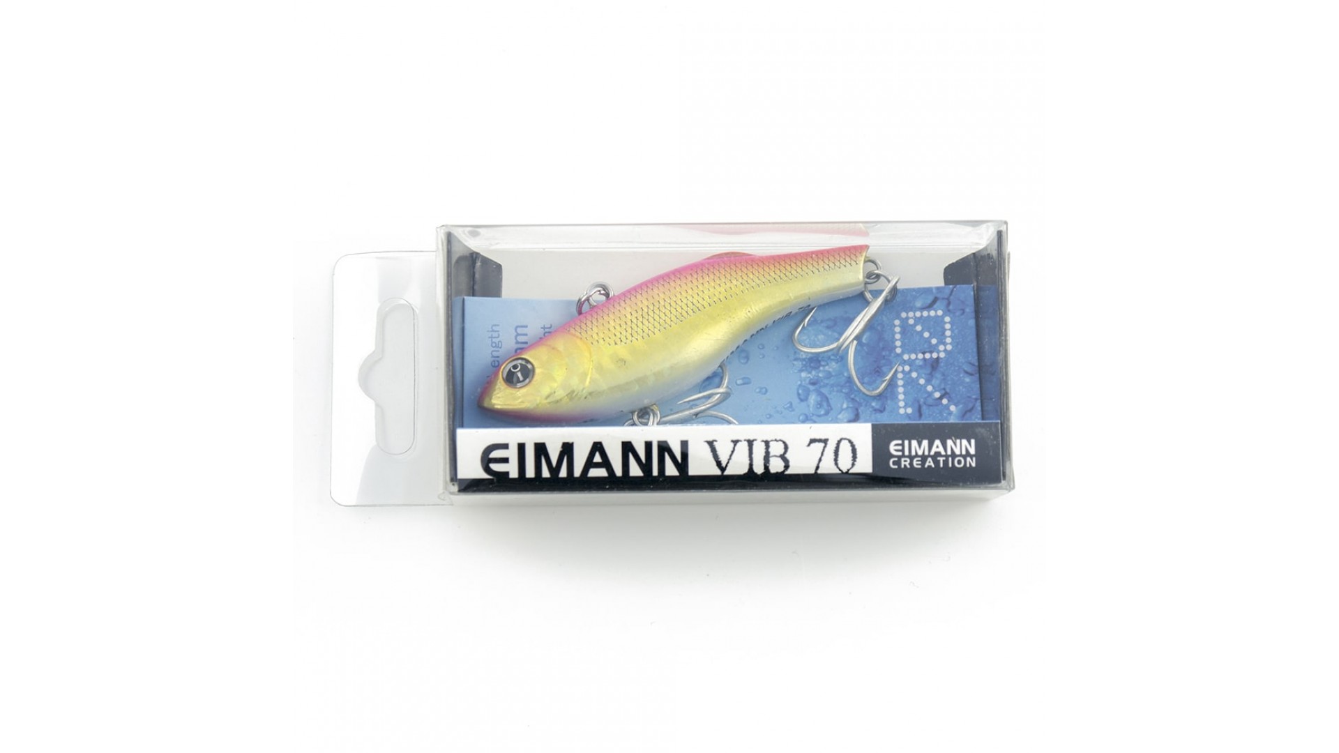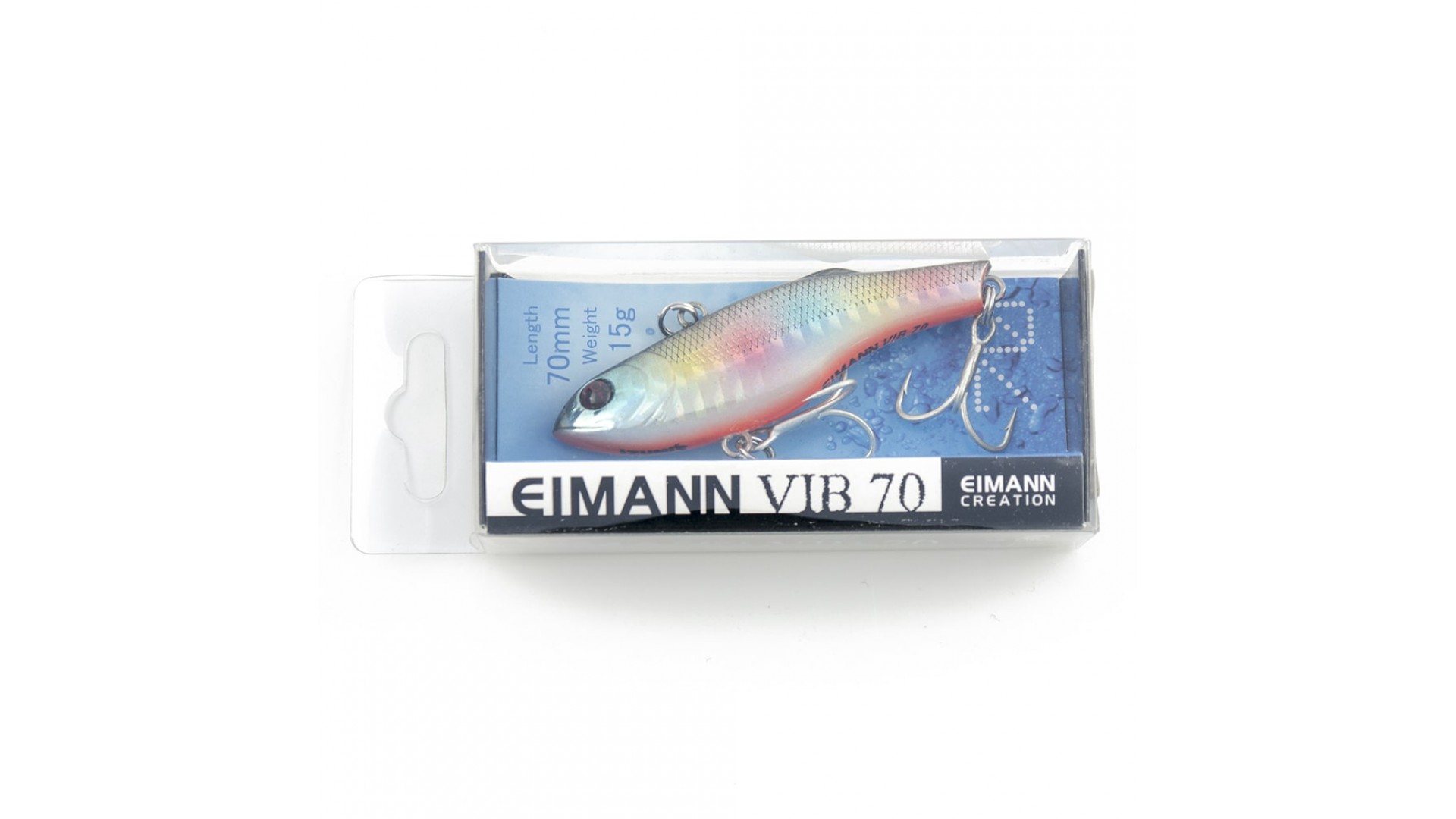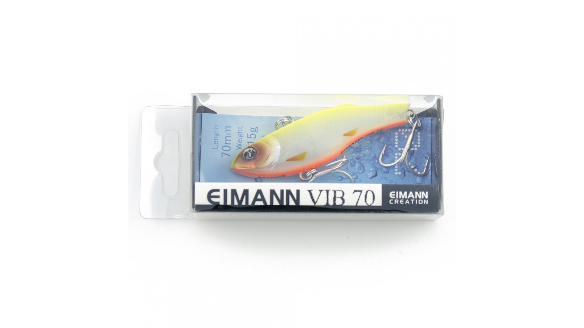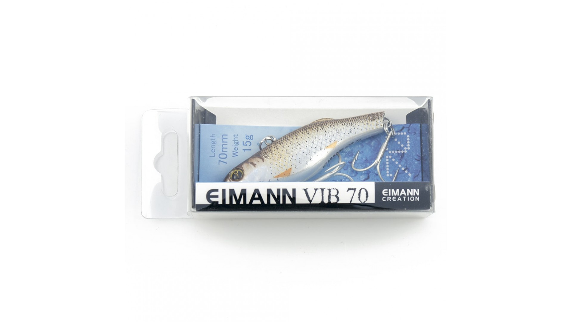 Этот тонущий воблер – универсальная приманка. Может с успехом применяться как для ловли спиннингом, так и для вертикального блеснения со льда. Eimann Виб сильно вибрирует на проводке спиннингом и на свободном падении при ловле в отвес.