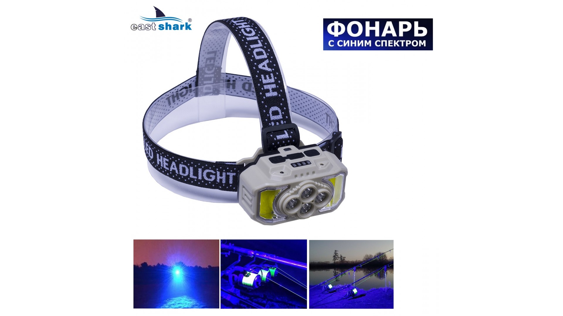 Легкий и удобный налобный фонарь EastShark.