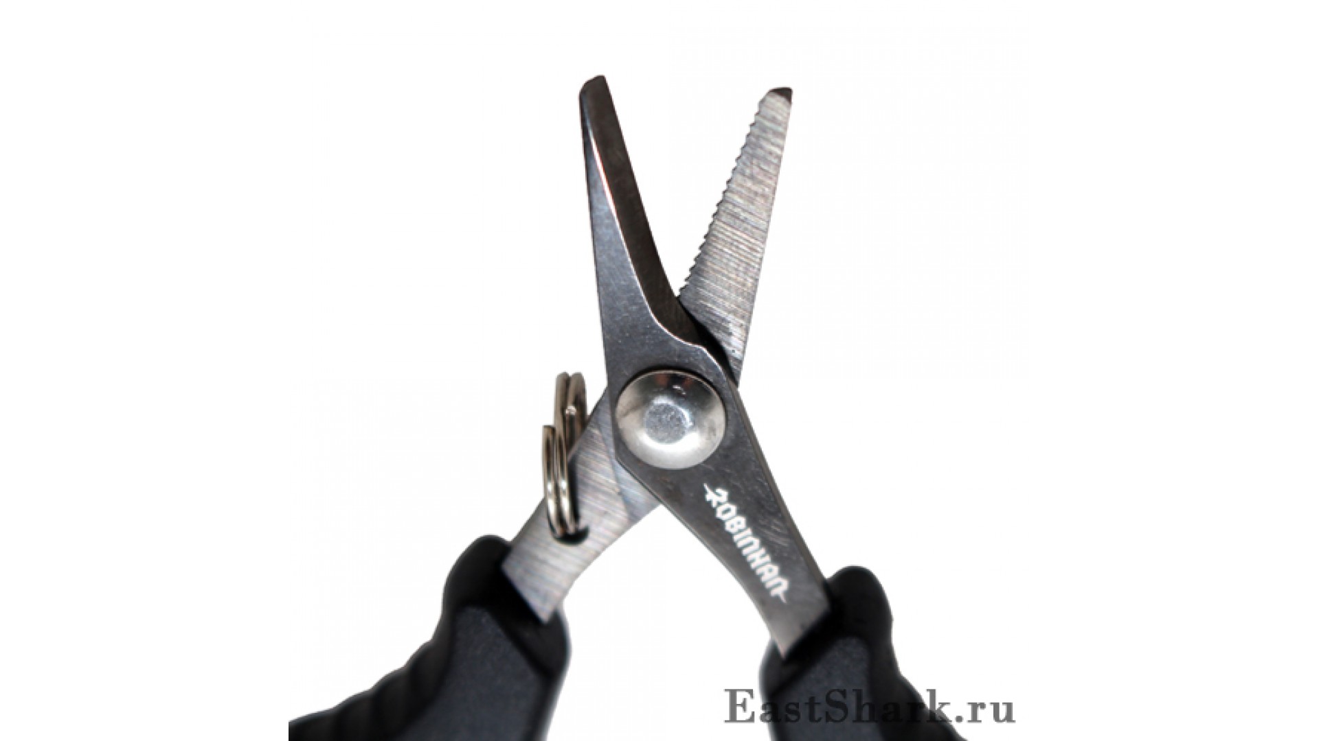 Ножницы оснащены заводным колечком, позволяющее прикрепить их к одежде или повесить на шею.