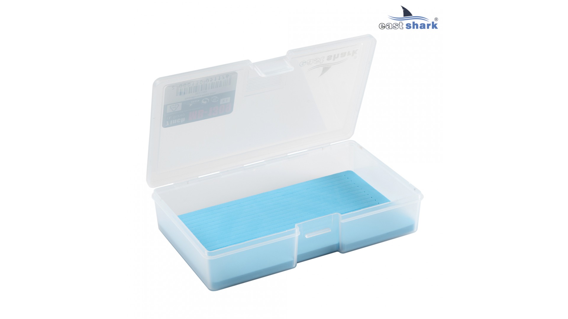 Внутри коробочки пористый вкладыш EVA с прорезями для фиксации крючков приманок.