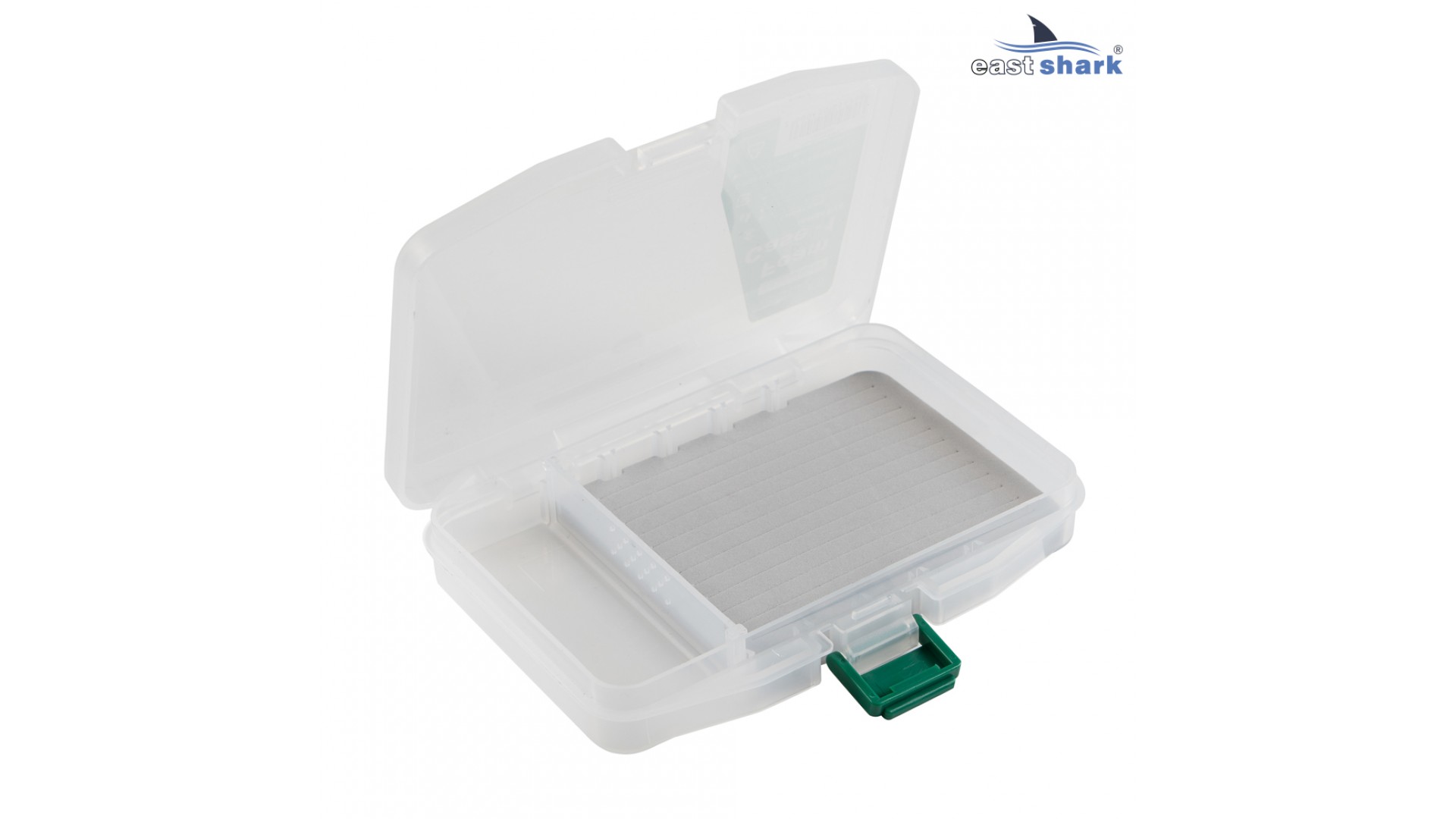 Внутри коробочки пористый вкладыш с прорезями для фиксации крючков приманок и не большой свободный отсек.