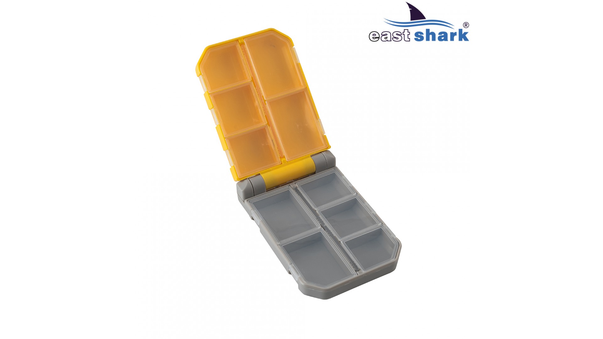 Коробочка имеет 10 ячеек для хранения рыбацкой мелочевки.