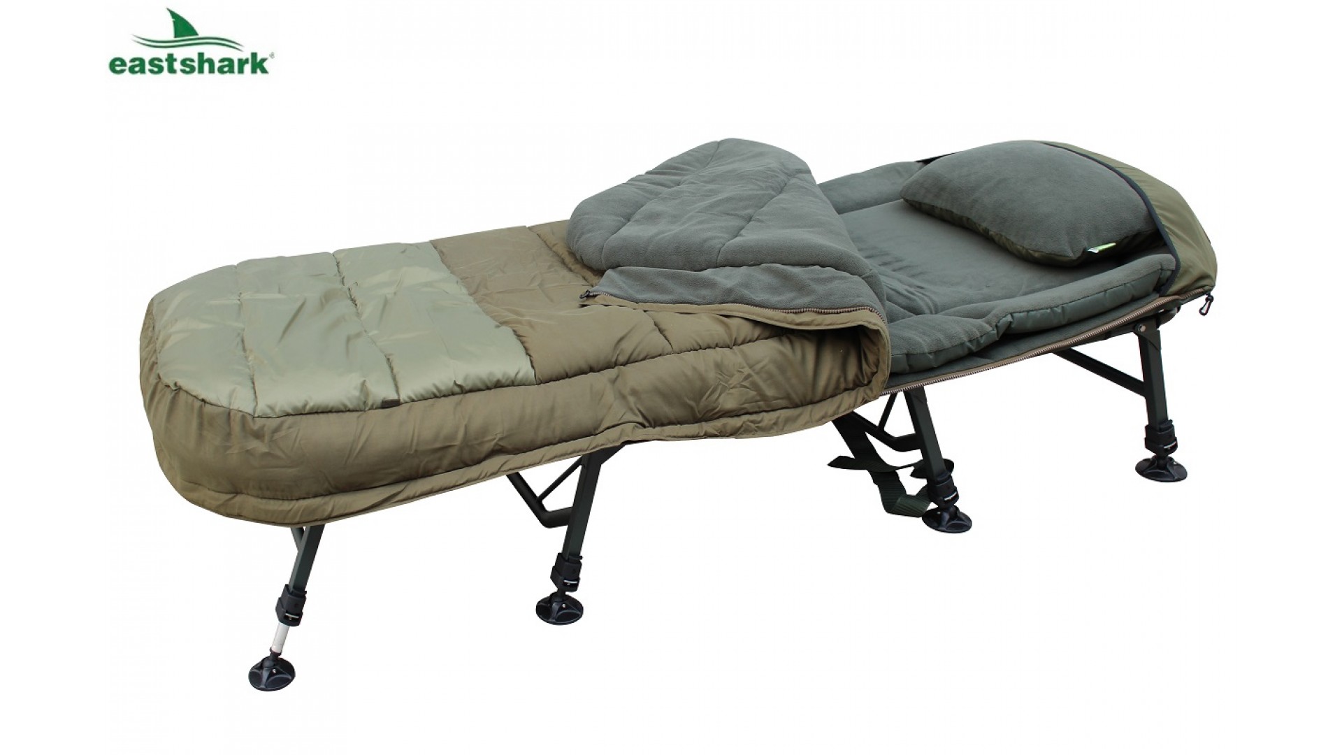 Раскладушка EastShark HYB 043F-SS XXL Sleep System разработана специально для эксплуатации в российских условиях, обеспечивая комфортный отдых на природе. Этот комплект включает раскладушку, дополнительный толстый матрас, одеяло на молнии и большую подушку, создавая полноценную систему для сна.