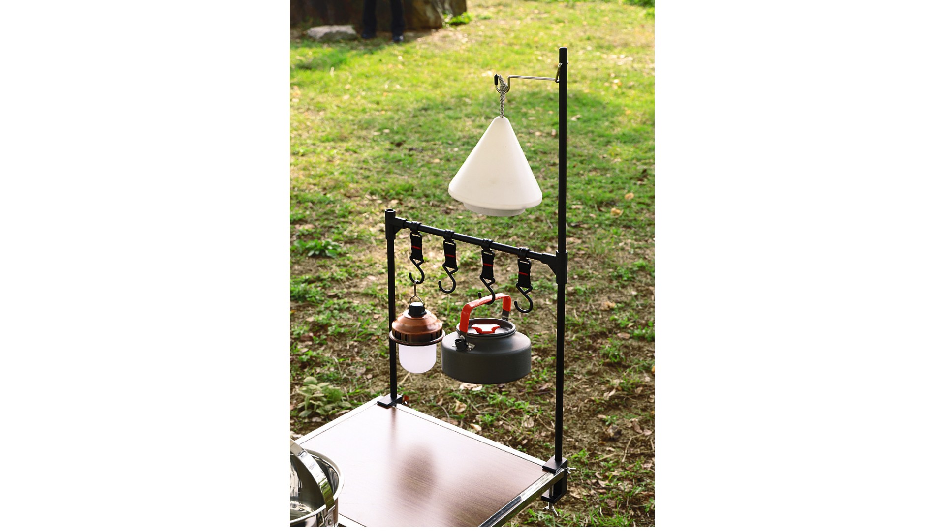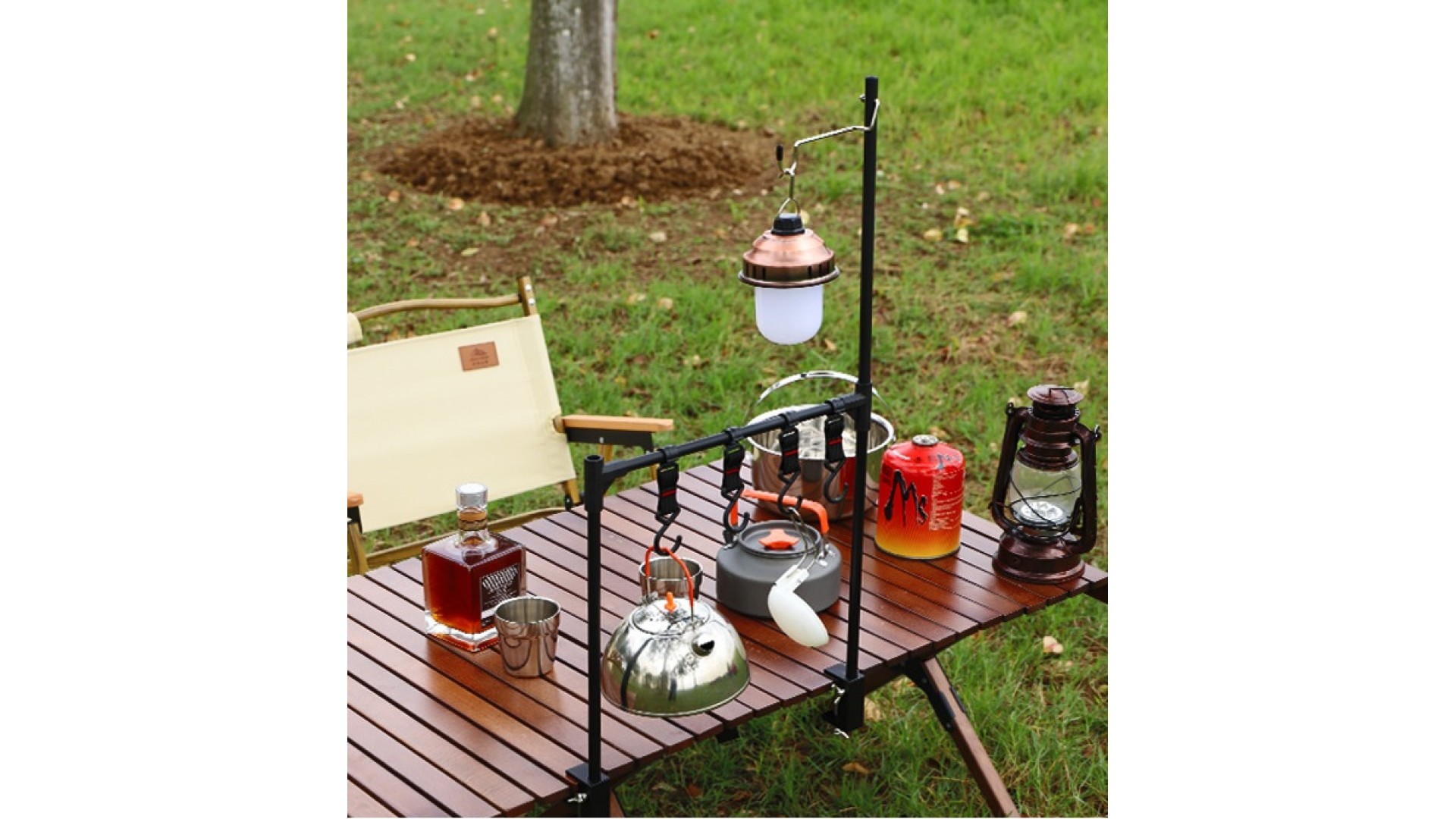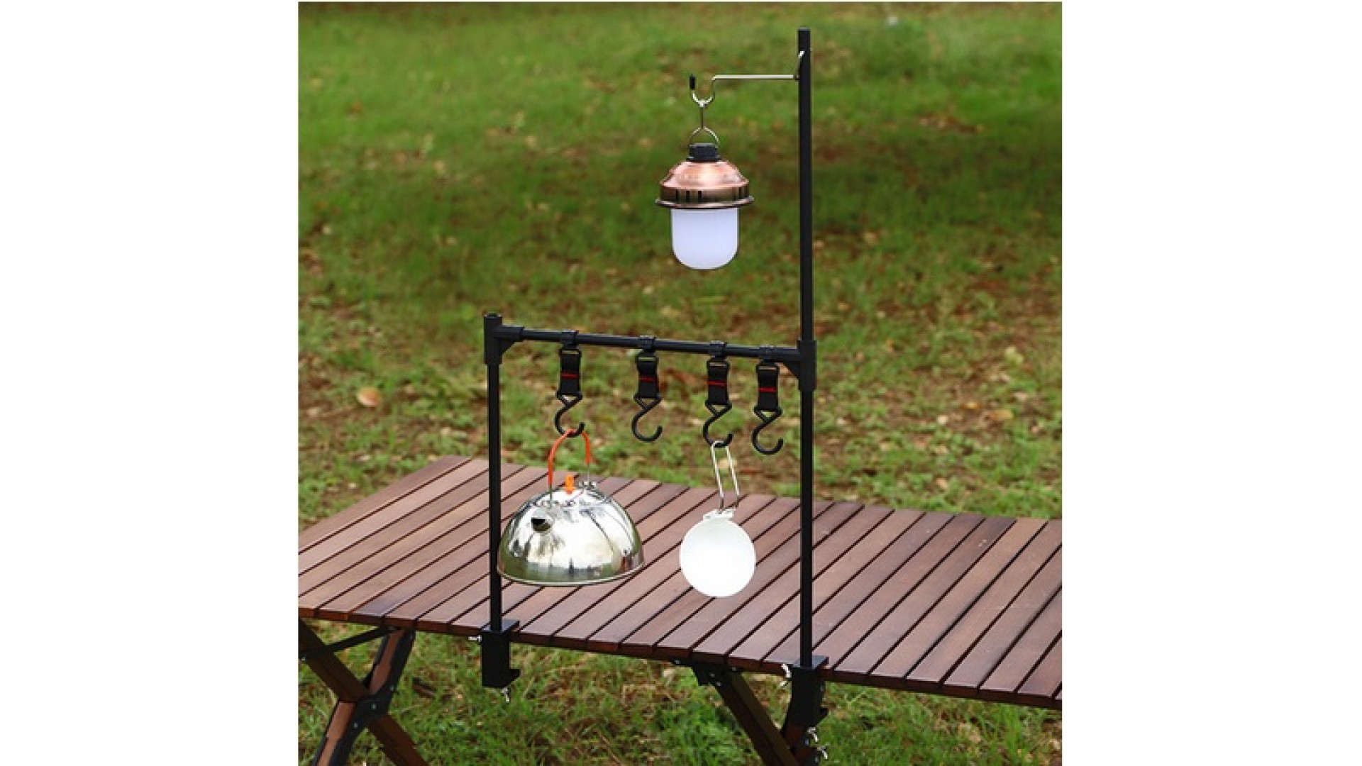 Этот стол легко можно комбинировать с грилем и уличными печами, просто убрав необходимое количество реек столешницы. Возможна комплектацией штангой для фонаря или дополнительными перекладинами для монтажей.