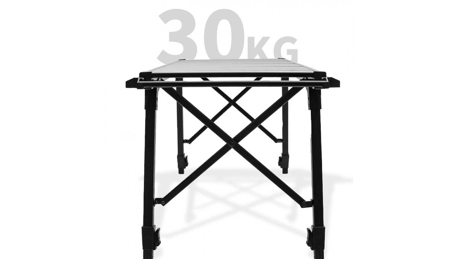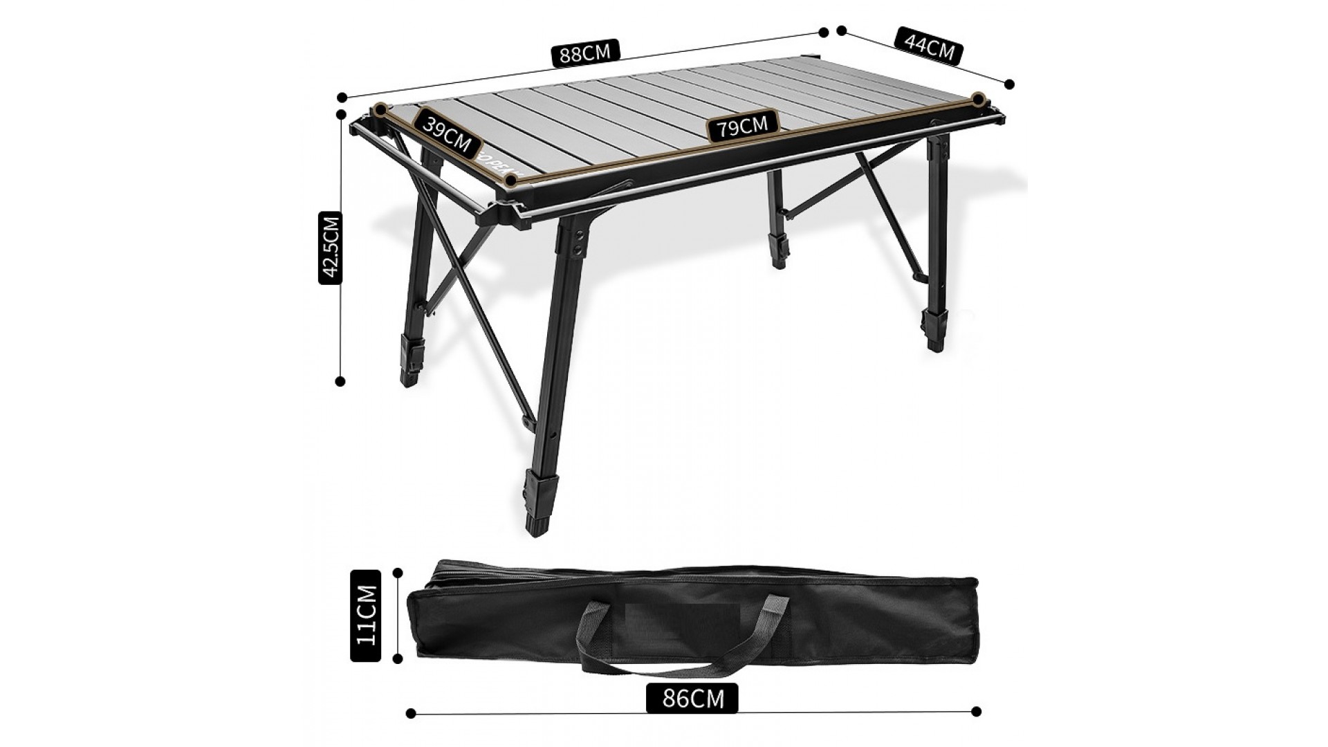 Стол поставляется с регулируемыми по высоте ножками, которые можно настроить на любую поверхность земли и изменяемой высотой от 43 до 64 см, что позволяет использовать как обычный стол, так и столик для монтажей.