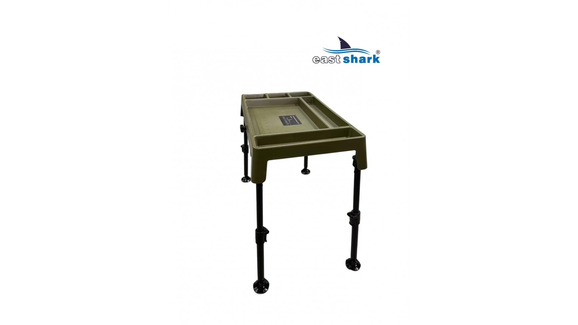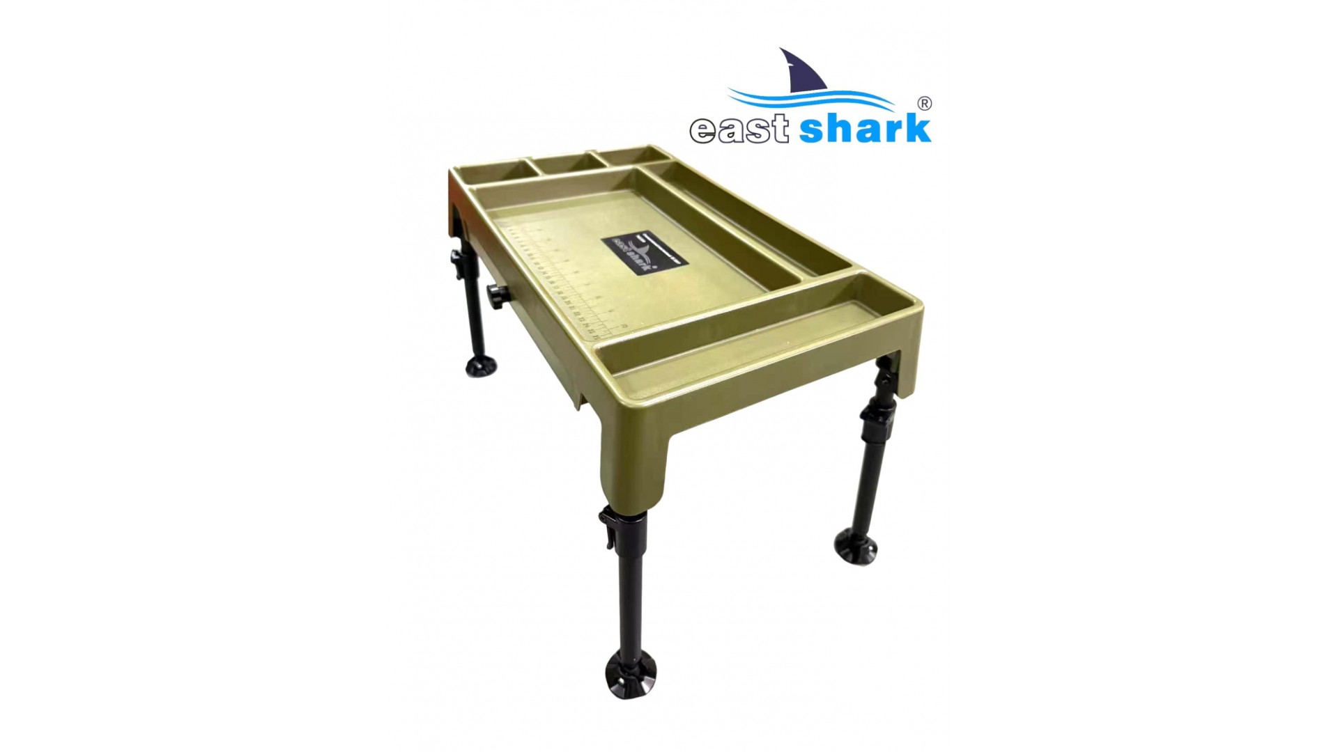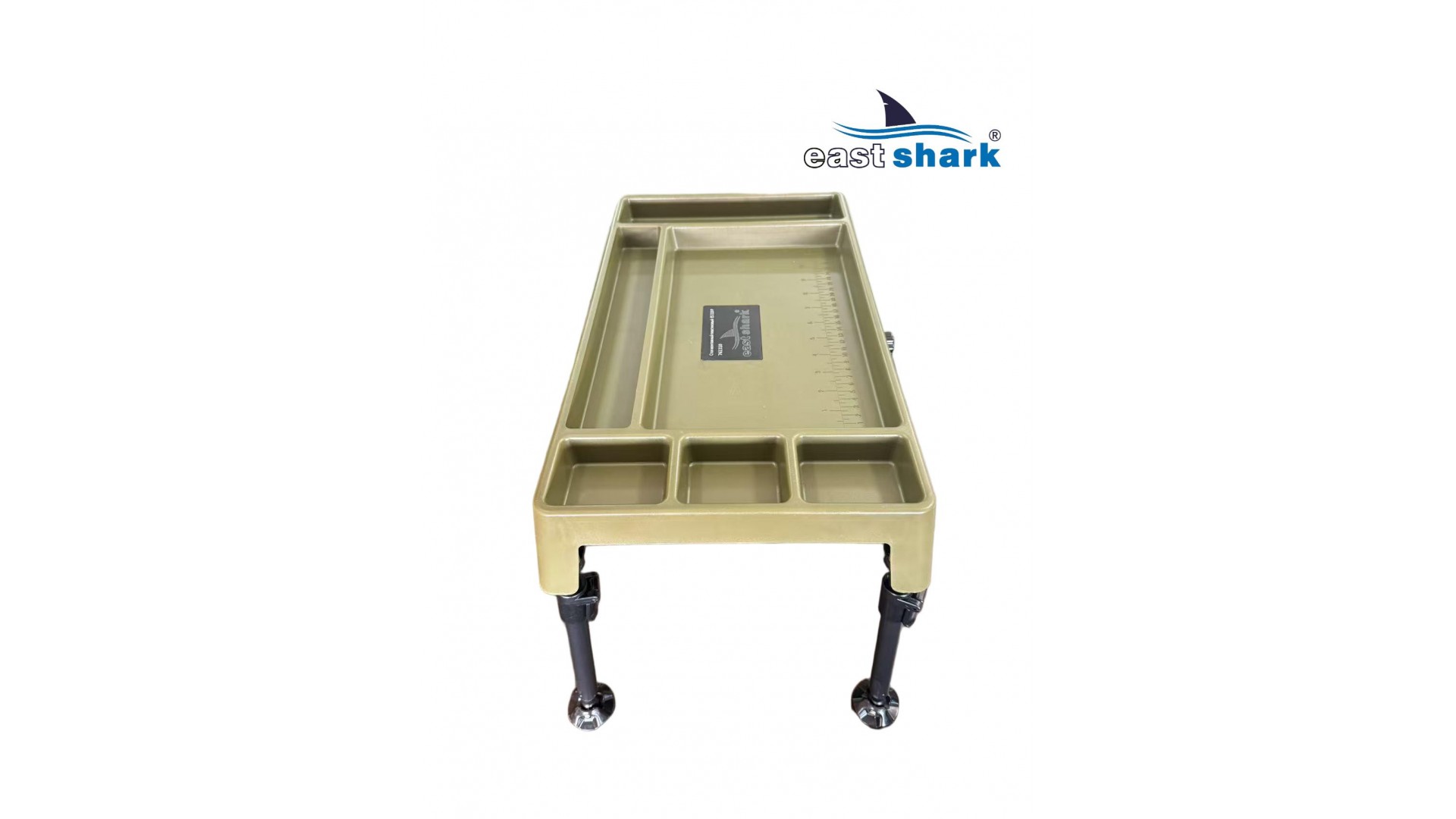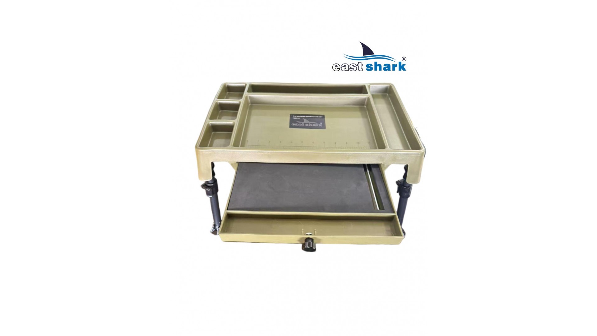 Изготовленный из высококачественного пластика, столик весит 1,8 кг и имеет 6 отсеков разной площади. Встроенный ящик-поводочница обеспечивает удобное хранение необходимых принадлежностей. Также столик оснащен лапами на ножках, что предотвращает его застревание в грязи и сыпучей почве.