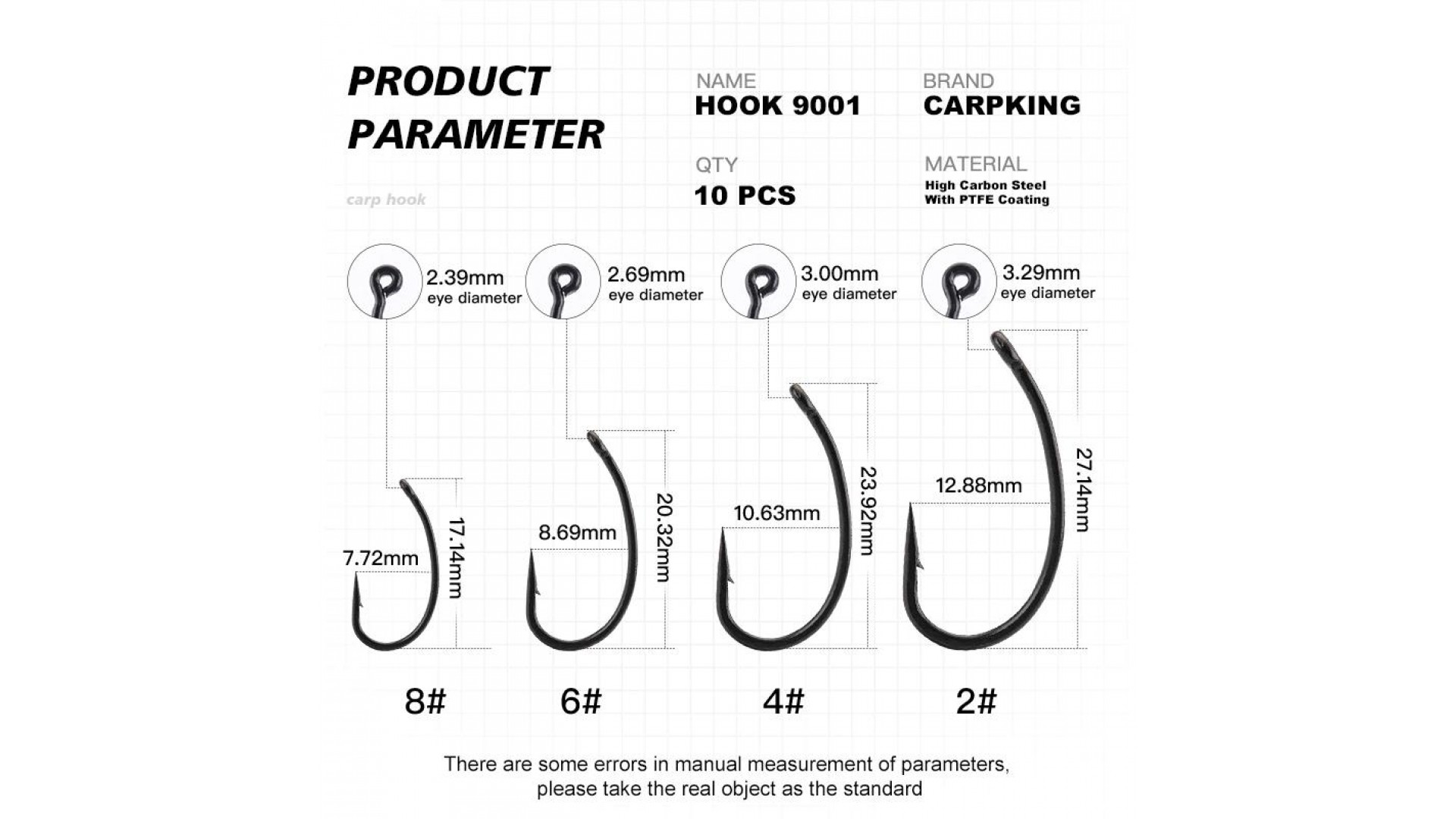 Покрытие крючка из ПТФЭ улучшает долговечность и остроту крючков. Тусклое покрытие из ПТФЭ также уменьшает видимость крючков.