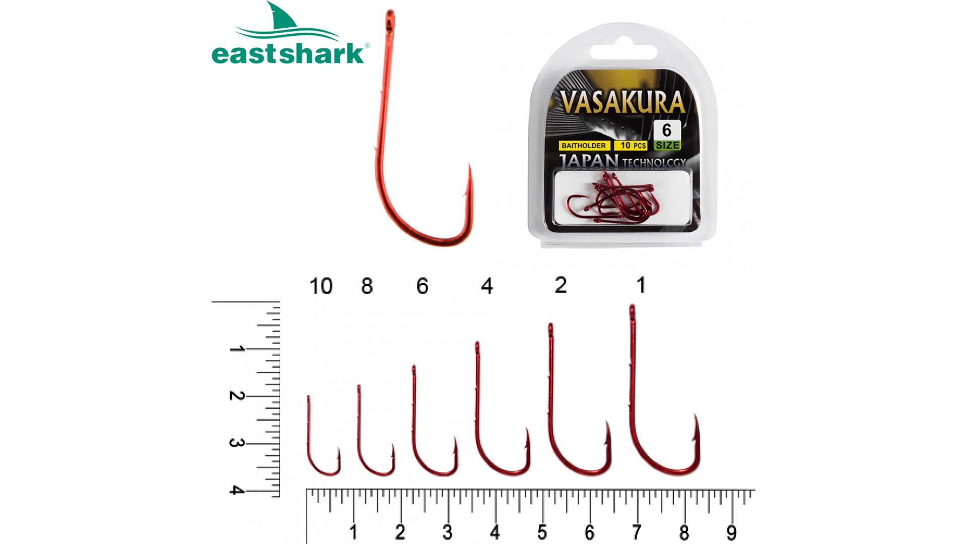 Крючки Baitholder RED (красн.) Vasakura № 6 (уп/10 шт)