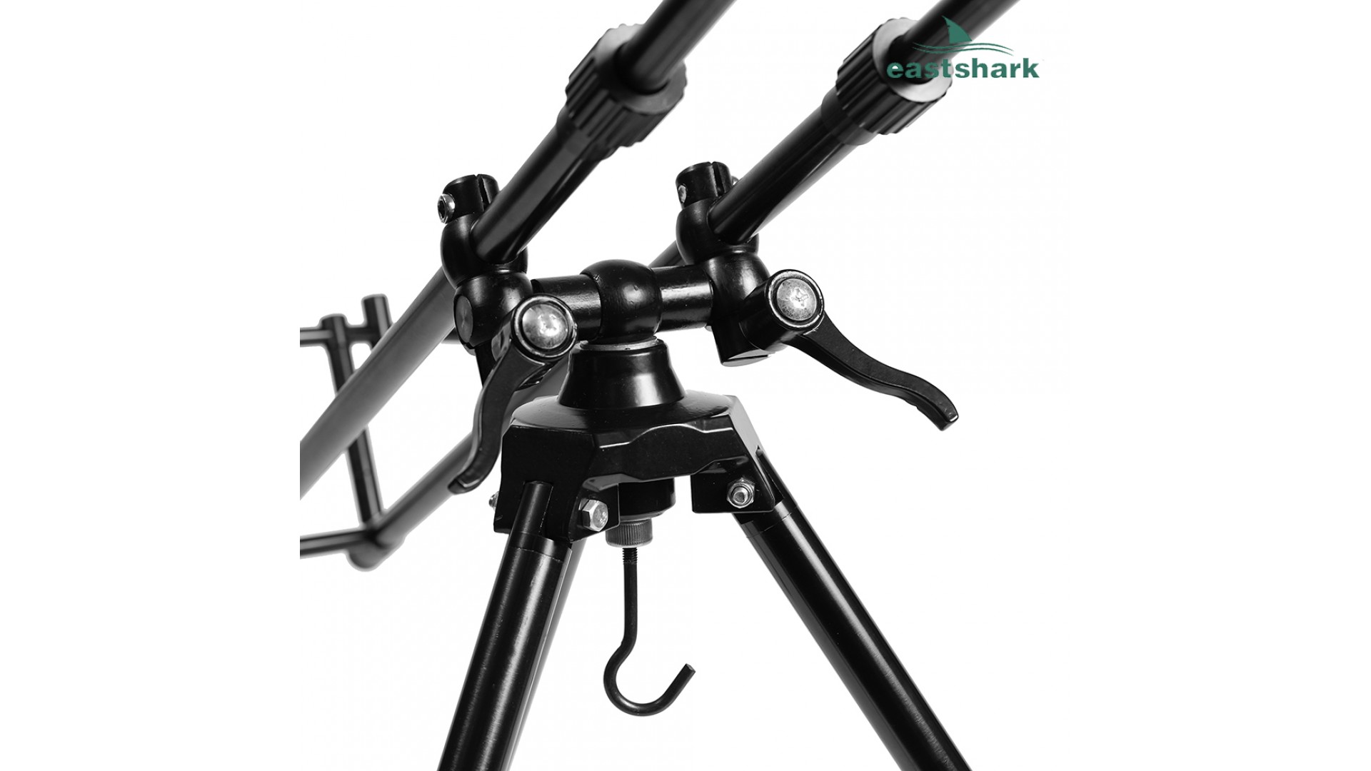 В нижней части основания ног имеется крюк для дополнительного утяжеления или фиксации род-пода, а так же он выполняет роль фиксирующего винта для блокировки вращения рамы на 360" по горизонтали.