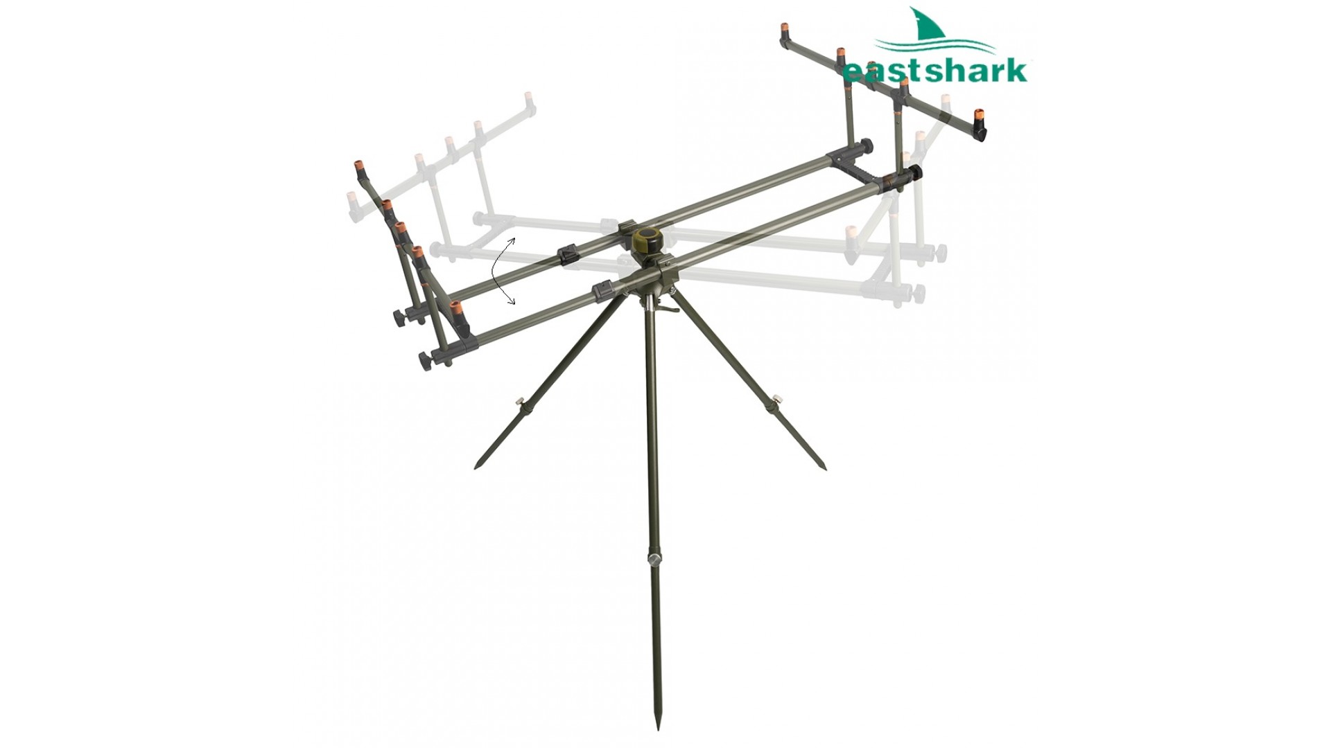 Rod-pod SDG-122-5 имеет мощную устойчивую металлическую конструкцию на треноге, одна из самых популярных моделей подставок EastShark.