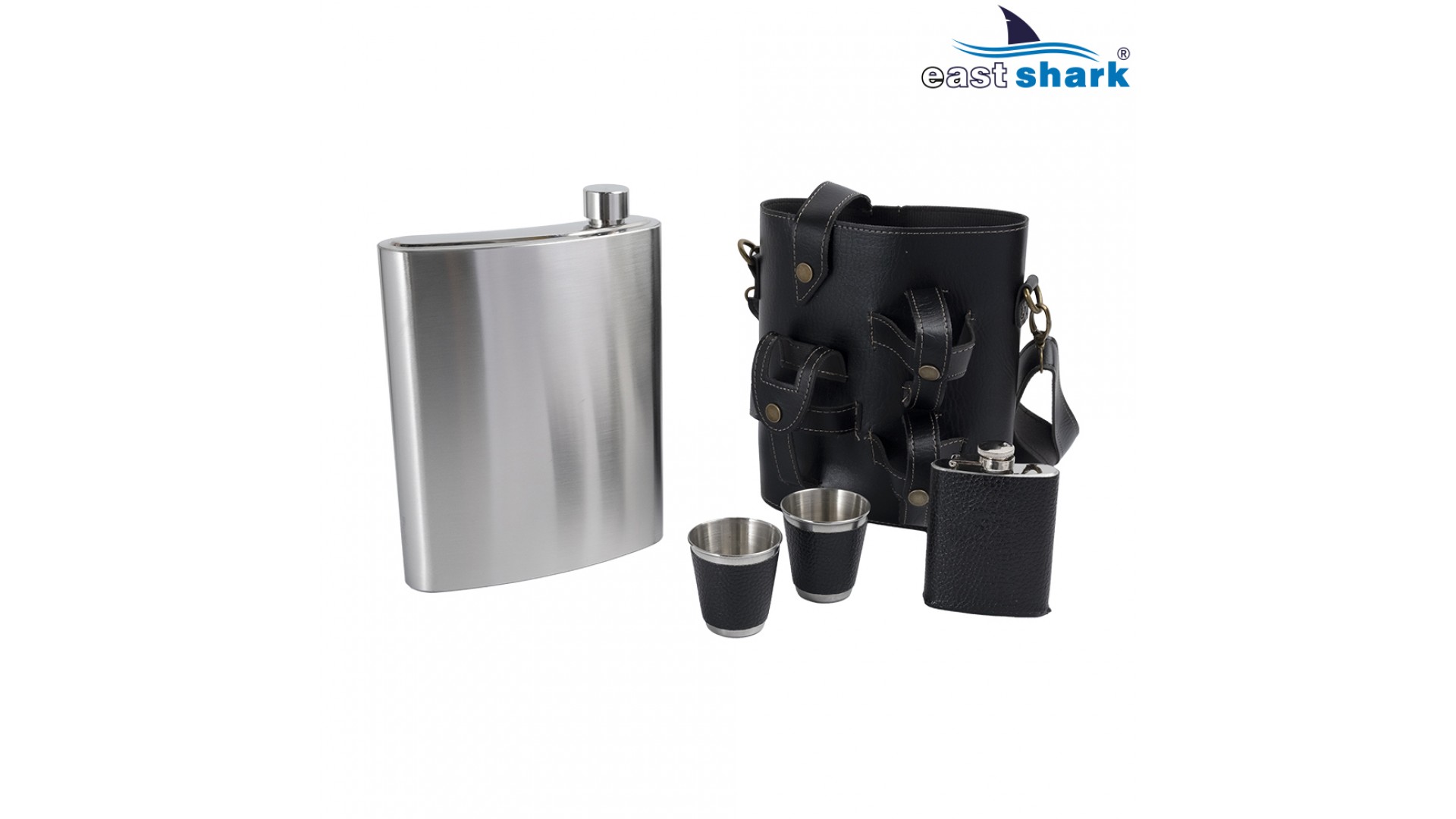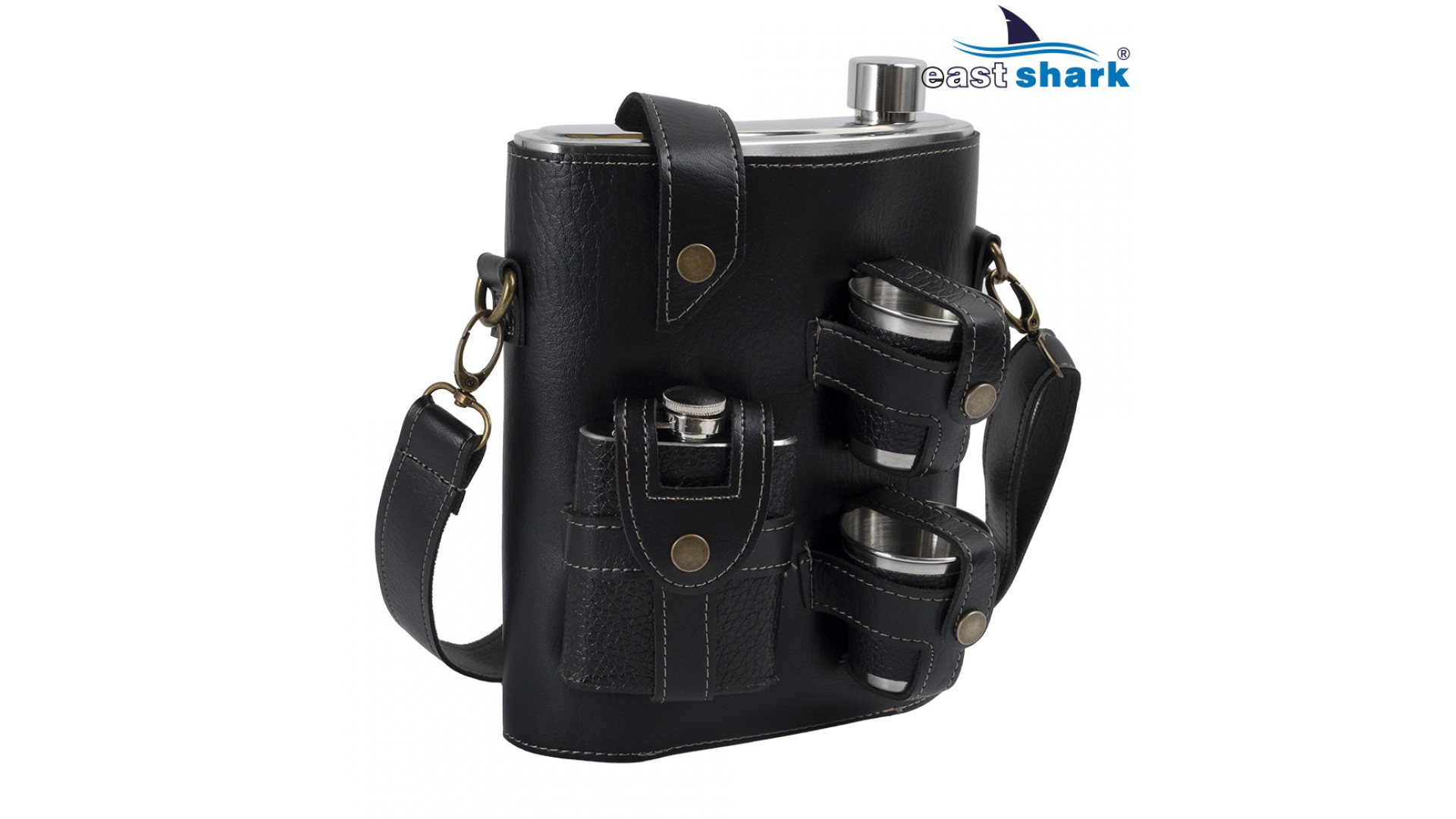 Комплектуется удобным чехлом с плечевым ремнем, маленькой фляжкой и 2 рюмками.