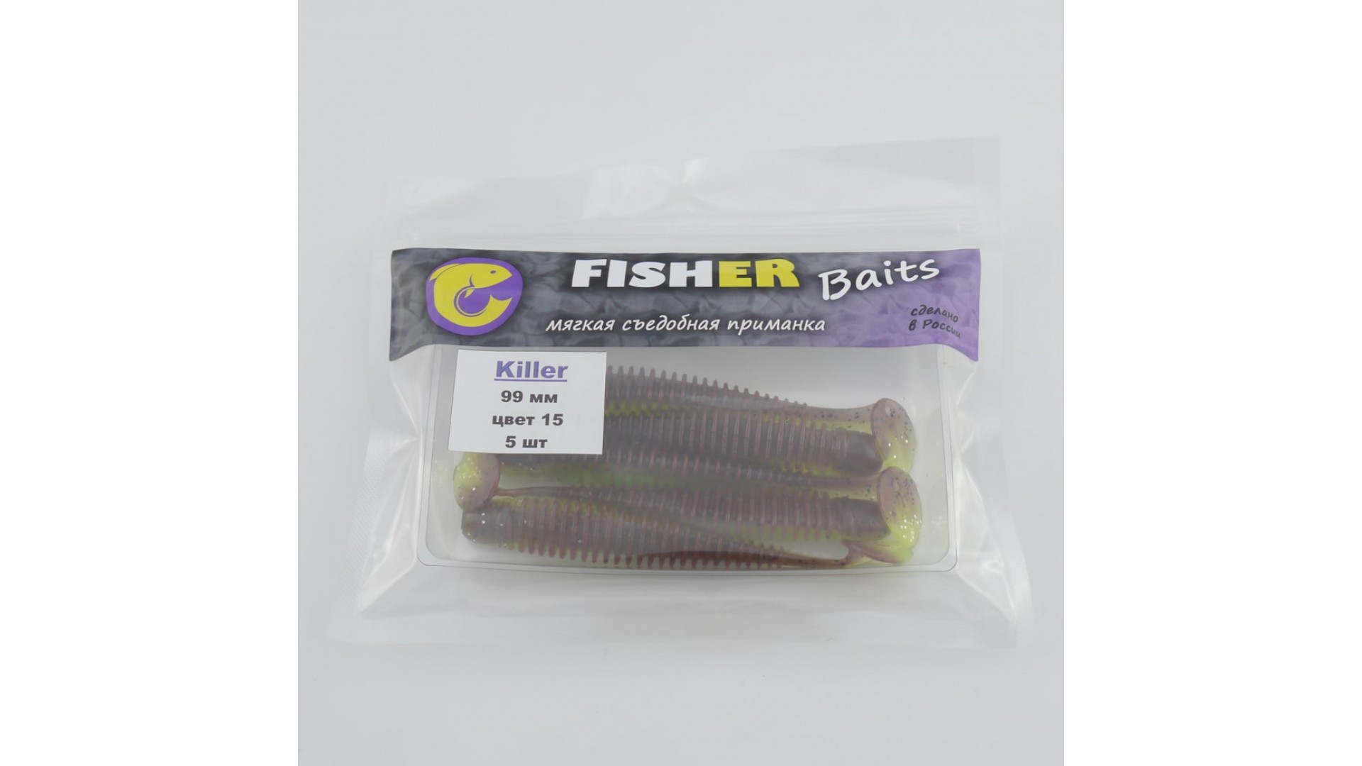 Виброхвост FISHER BAITS Killer 99мм цвет 15 (уп. 5шт)