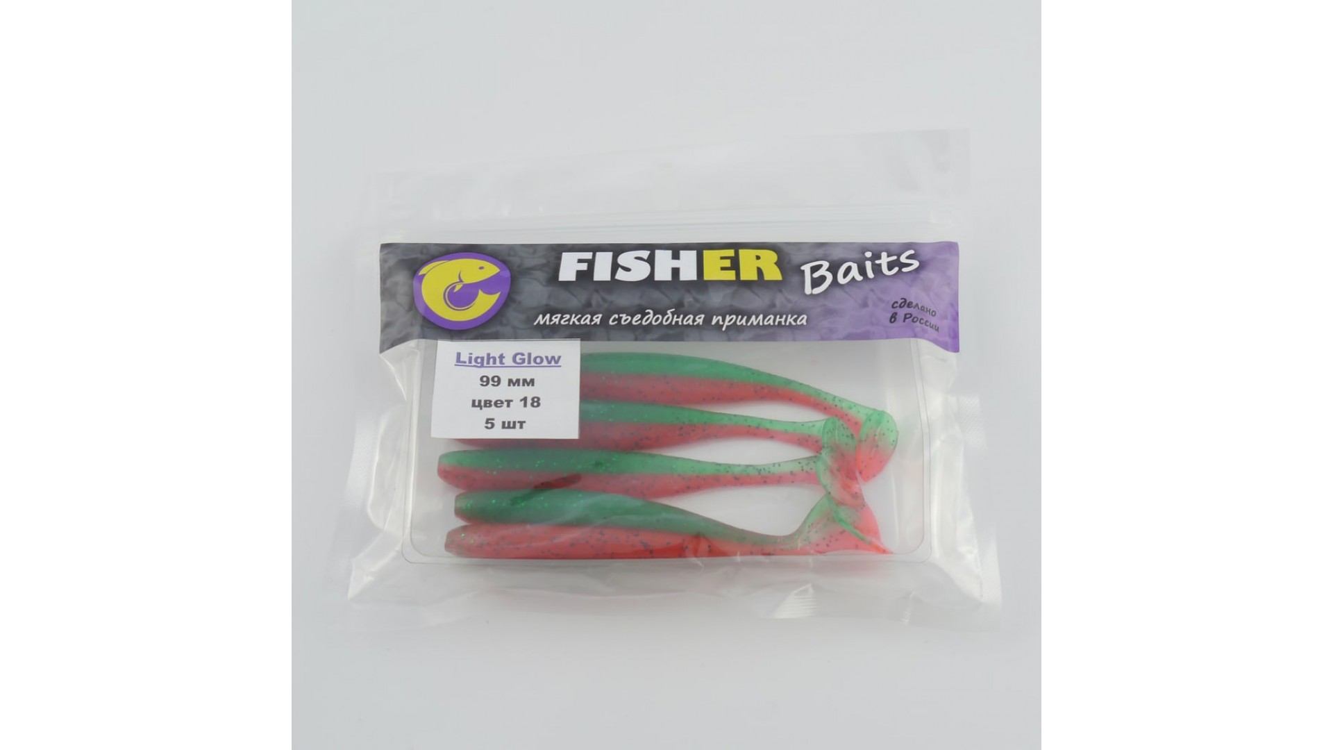 Виброхвост FISHER BAITS Light Glow 99мм цвет 18 (уп. 5шт)