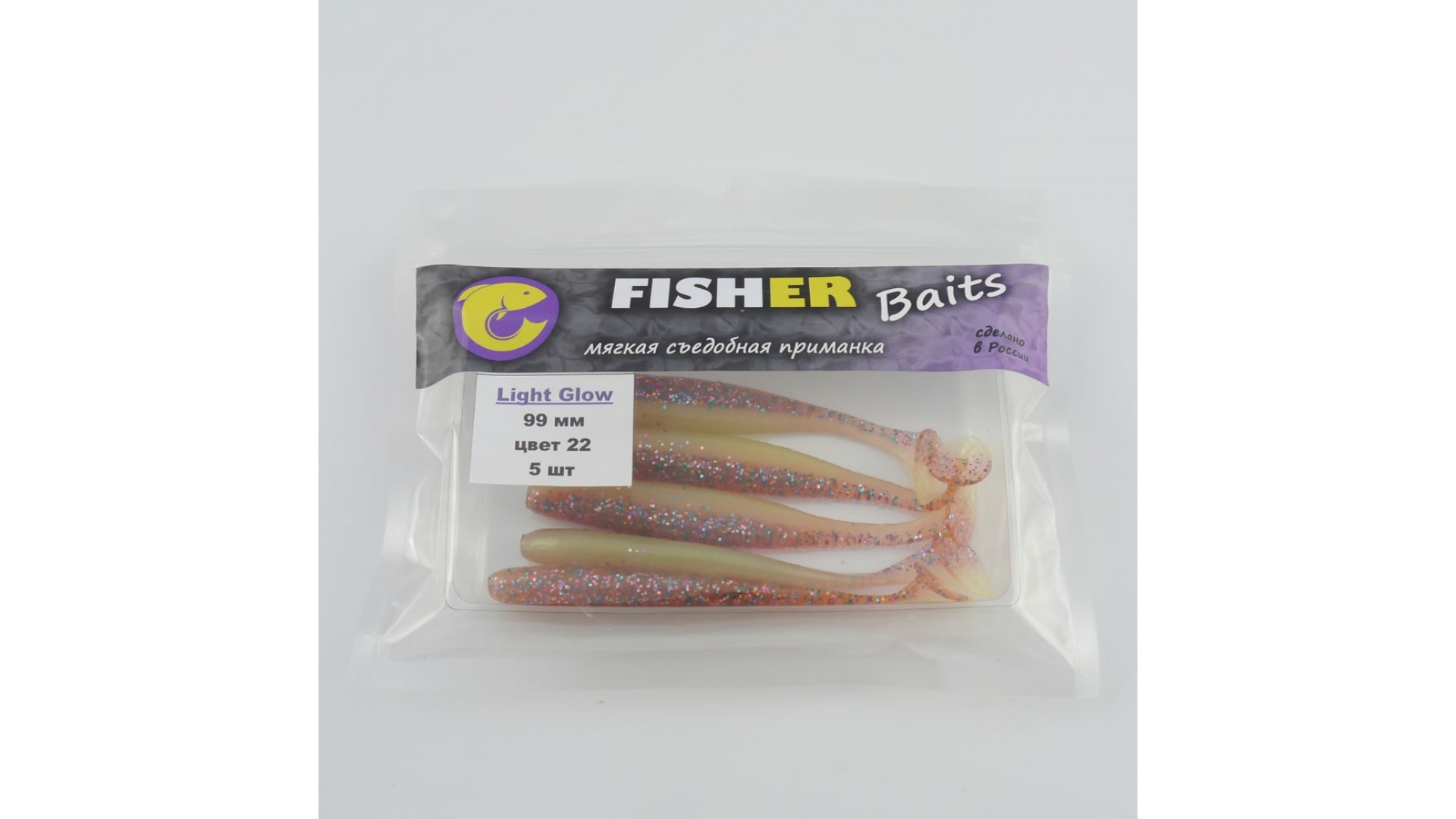 Виброхвост FISHER BAITS Light Glow 99мм цвет 22 (уп. 5шт)