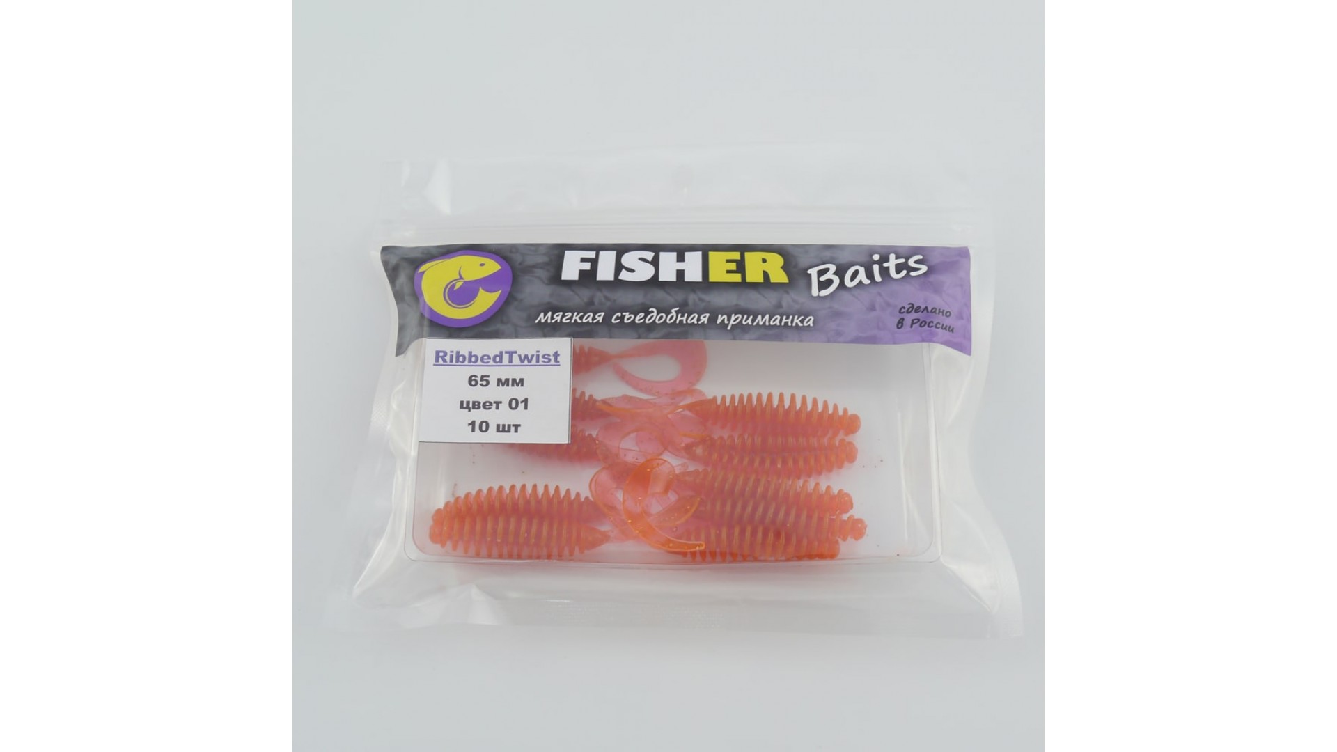 Виброхвост FISHER BAITS Ribbed Twist 65мм цвет 01 (уп. 10шт)