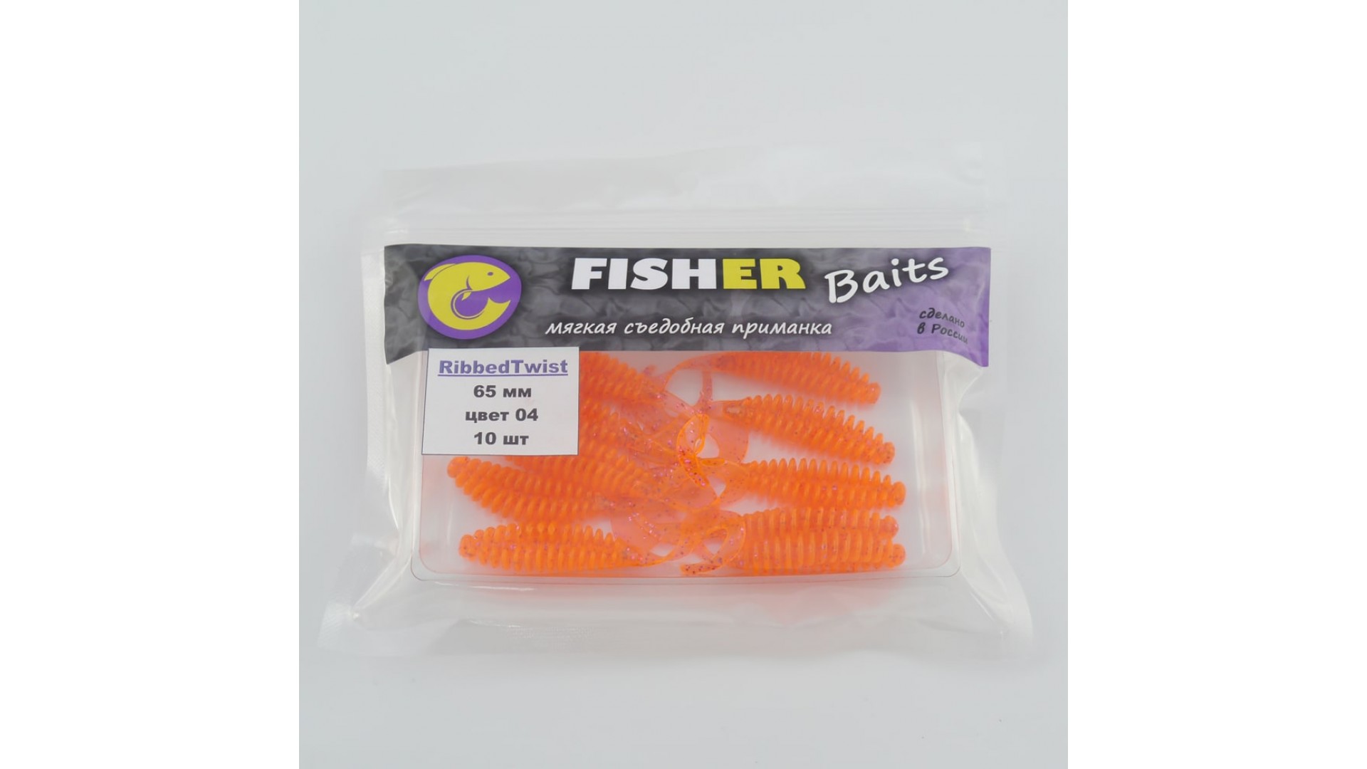 Виброхвост FISHER BAITS Ribbed Twist 65мм цвет 04 (уп. 10шт)