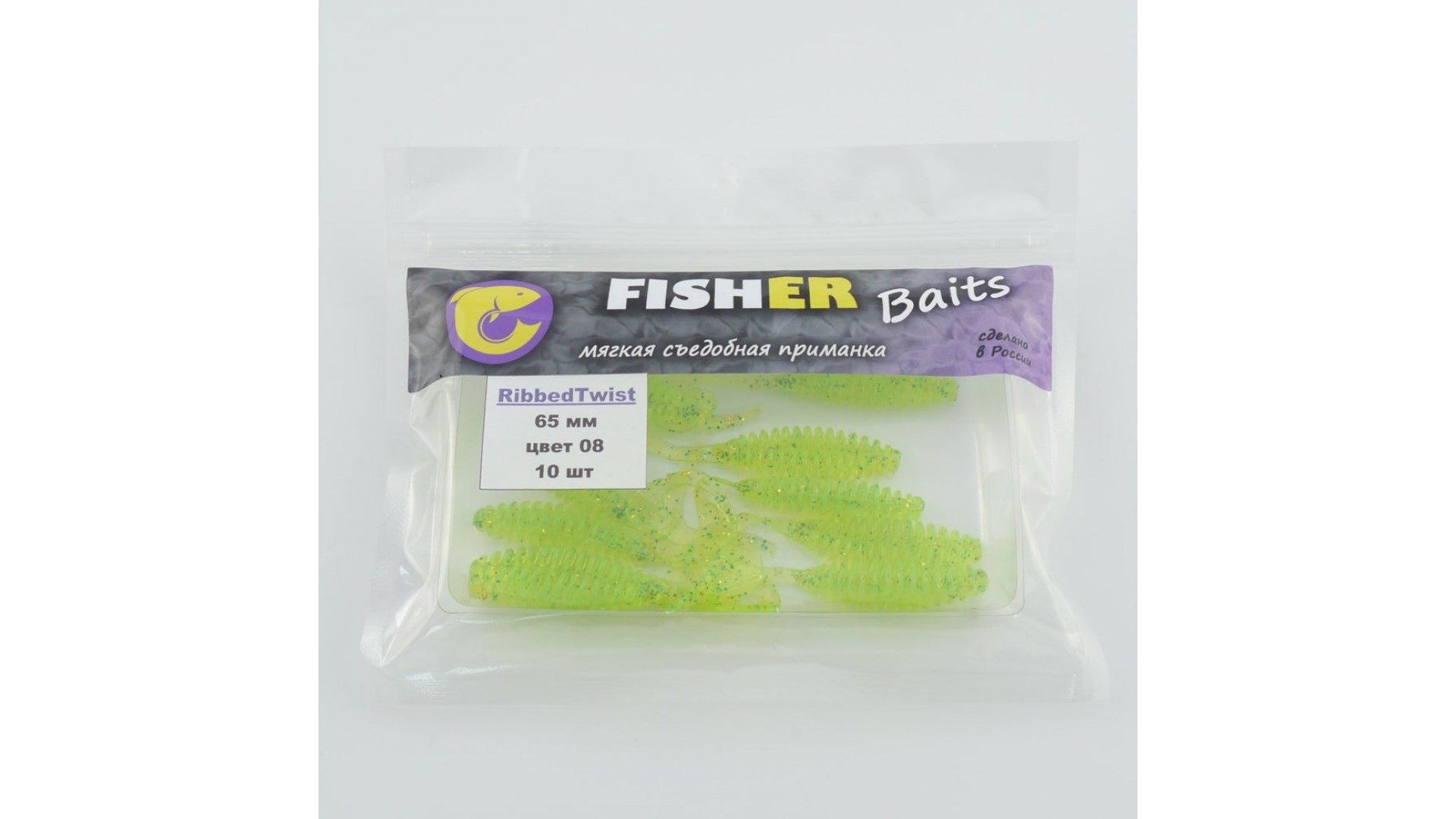 Виброхвост FISHER BAITS Ribbed Twist 65мм цвет 08 (уп. 10шт)