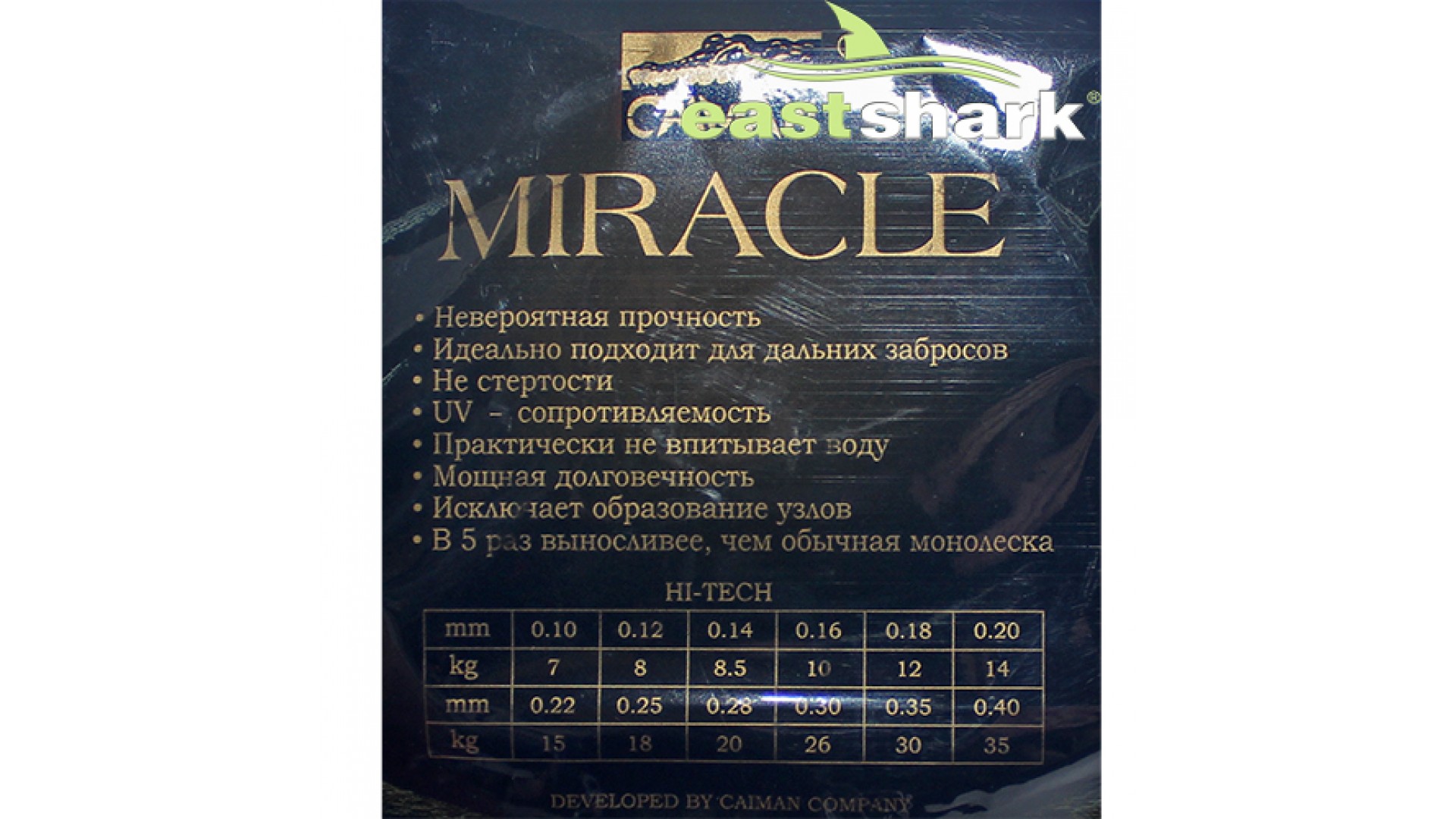 4-х жильный плетеный материал EastShark с пропиткой, увеличивающей износостойкость шнура.