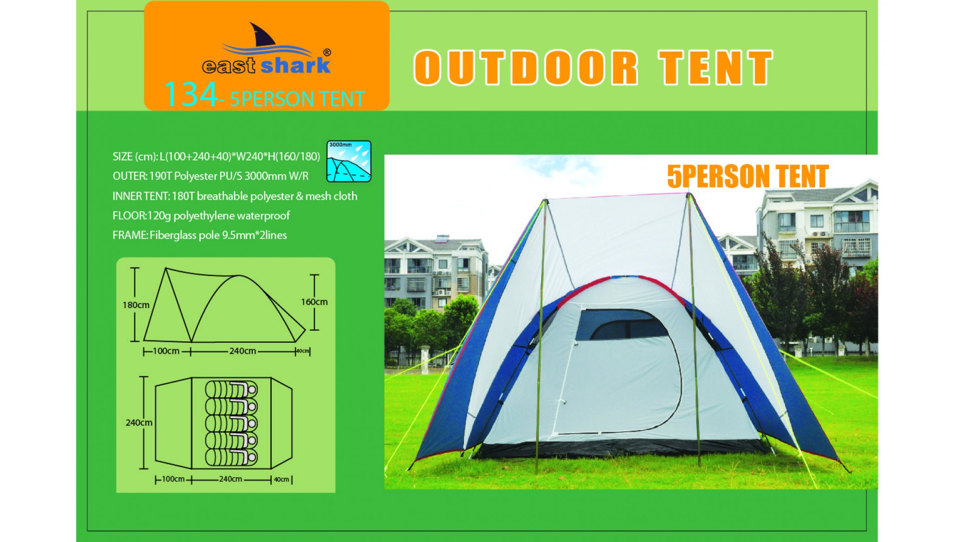 Ткань тента: 190T POLYESTER (полиэстер) PU3000MM B/H