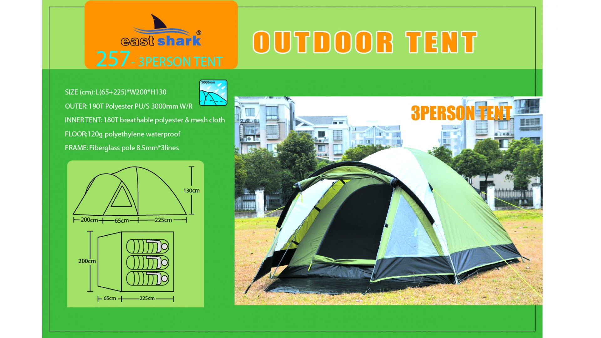 Ткань тента: 190T POLYESTER (полиэстер) PU3000MM B/H