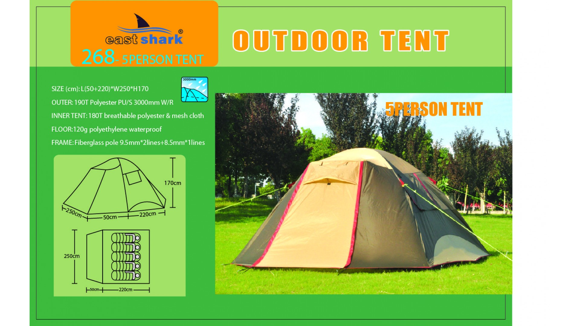 Ткань тента: 190T POLYESTER (полиэстер) PU3000MM B/H