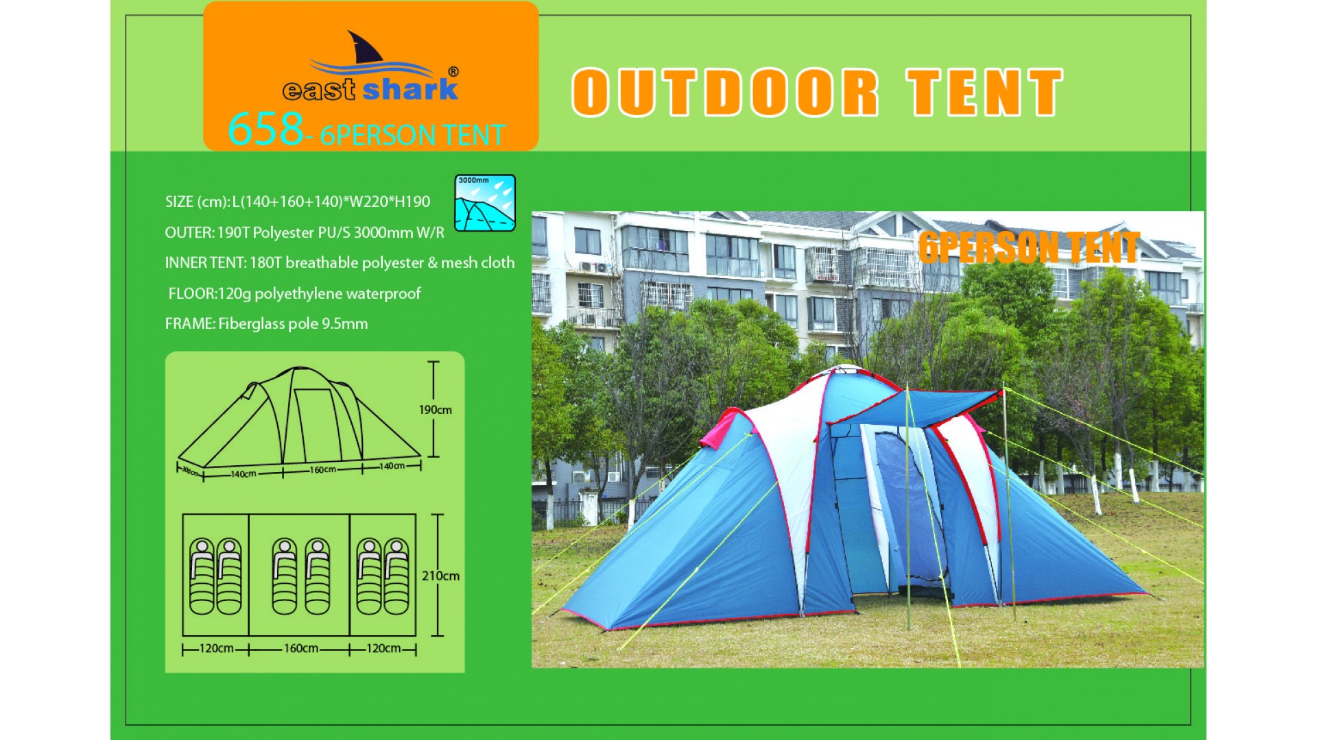 Ткань тента: 190T POLYESTER (полиэстер) PU3000MM B/H