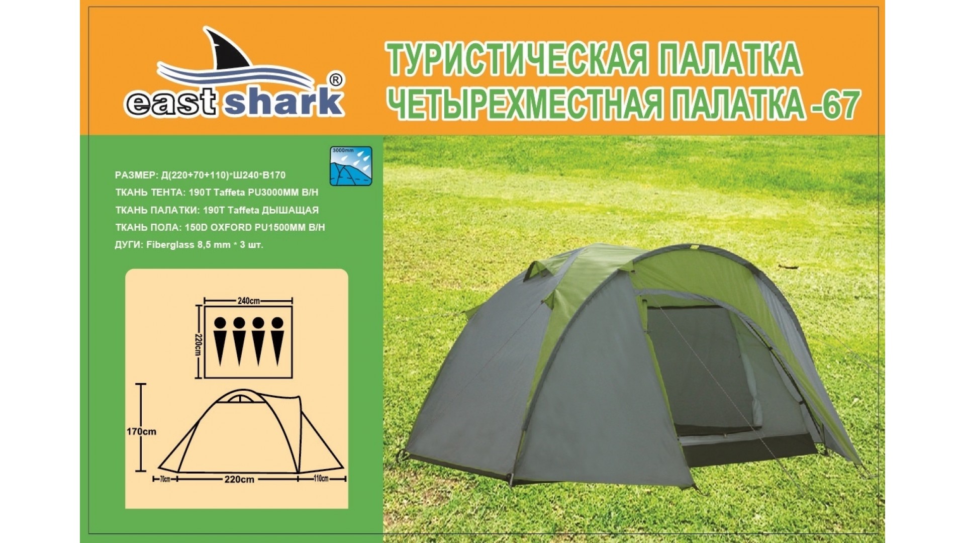 Водостойкость тента: 3000 мм.
